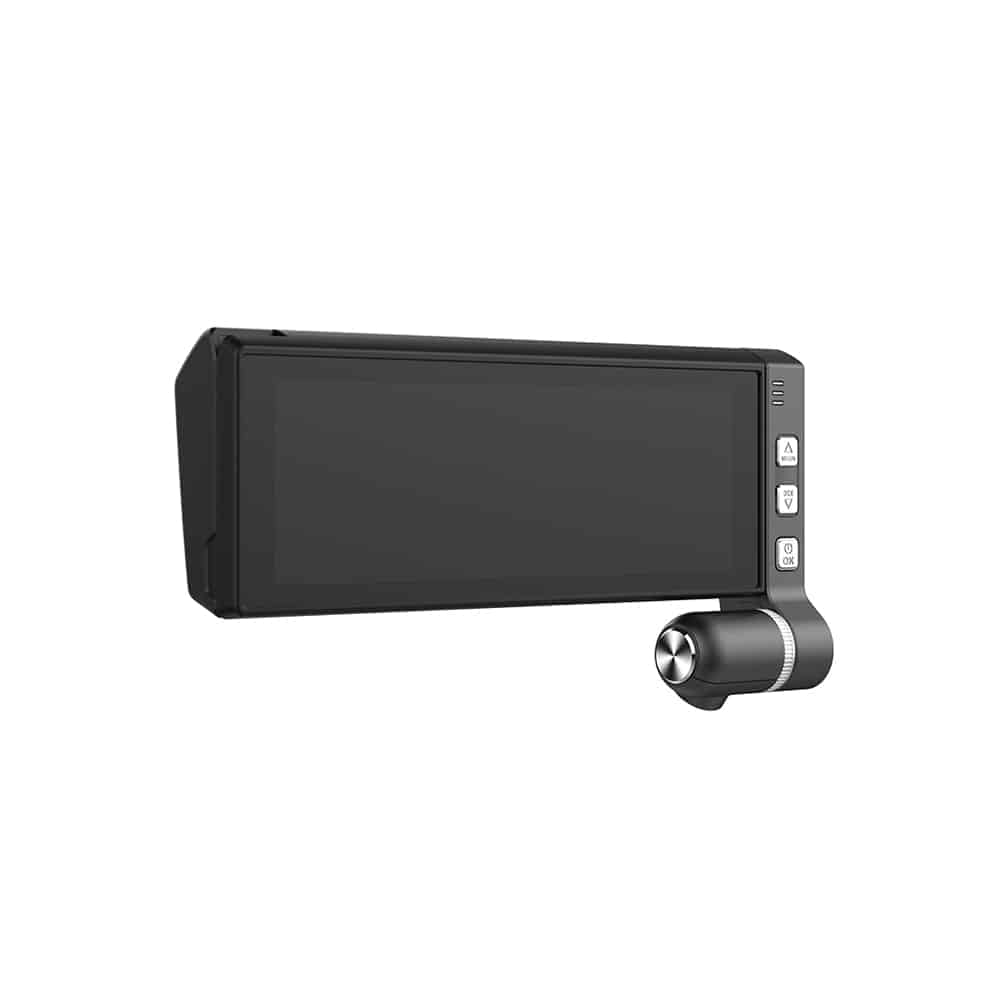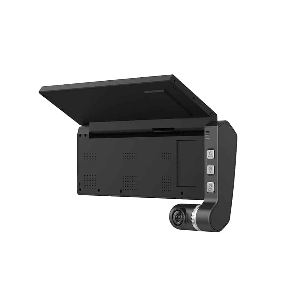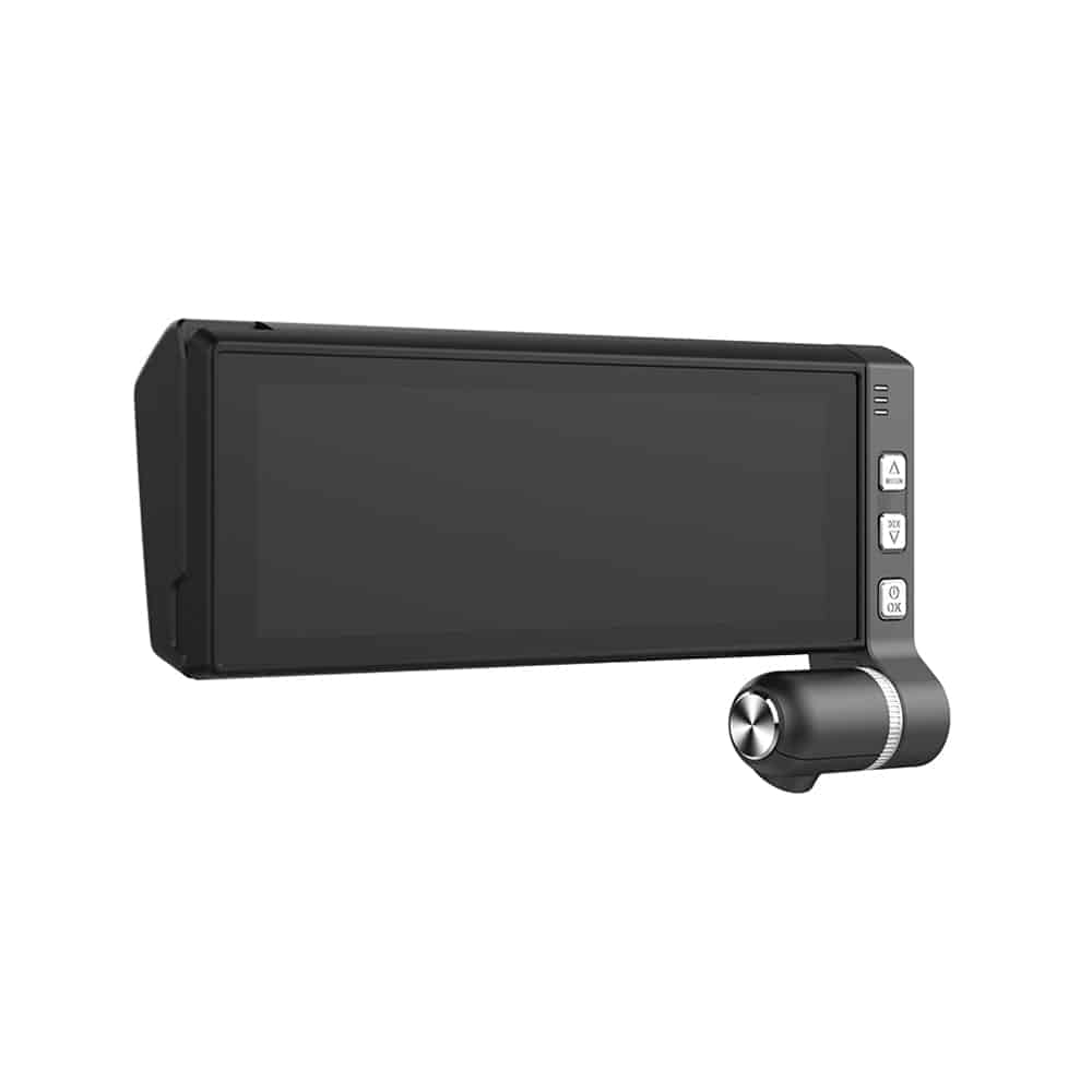 The bright IPS screen lets you monitor both camera feeds in real time, review recordings instantly, and access settings directly from the cab.