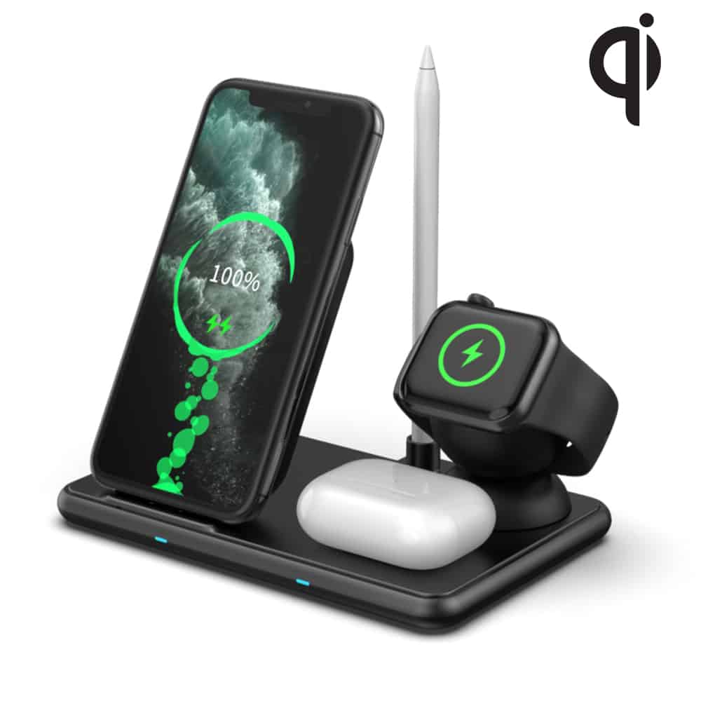 Designed especially for Apple users, the WCH‑460 includes a stand for your Watch’s original charger, plus spots for AirPods and Pencil — but it also works just as well with Qi-enabled Android devices and other wireless accessories.