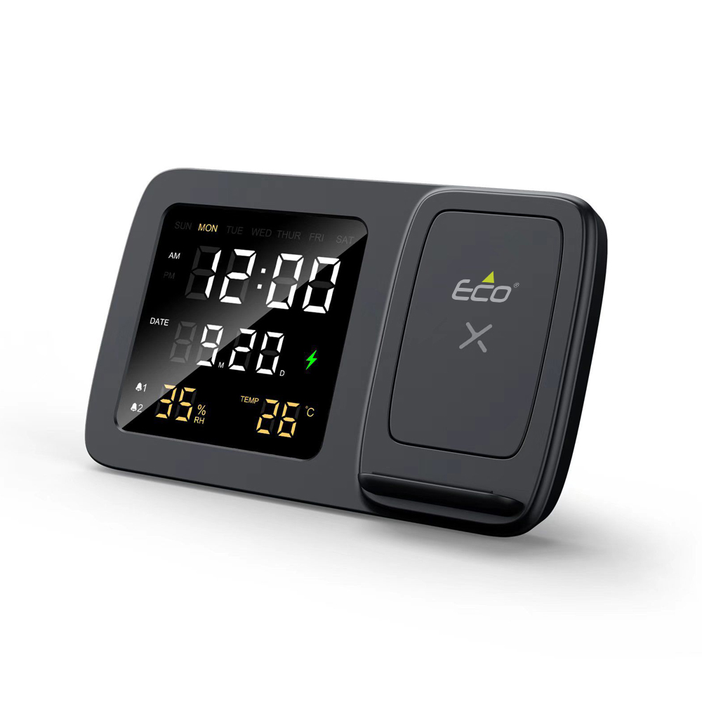 Meet the ECO WCH-480 — a multi-functional wireless charging pad designed to simplify your space and support your routine. Whether it’s on your nightstand, desk, or shelf, this sleek device combines elegant design with essential tools: fast wireless charging, real-time weather info, time and date display, and a built-in alarm — all in one compact, minimalist unit.